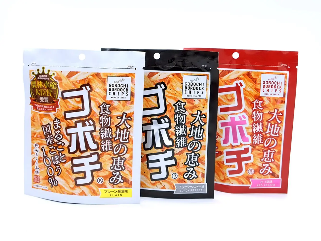 Miyazaki Prefecture is one of Japan’s leading burdock-producing regions. Our signature product, Gobochi Chips, is made from fresh, fiber-rich burdock. Even today, each chip is handmade to ensure its quality and authenticity.